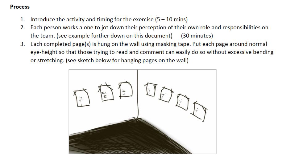The resource I am sharing here describes a process you can follow as part of an early team-building activity to clarify and agree team roles and responsibilities down to individual levels.
